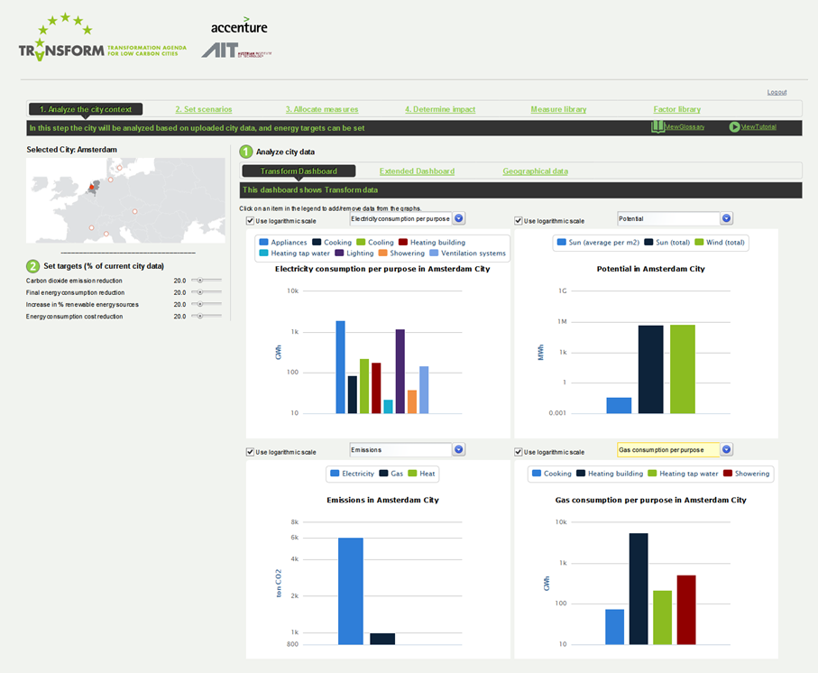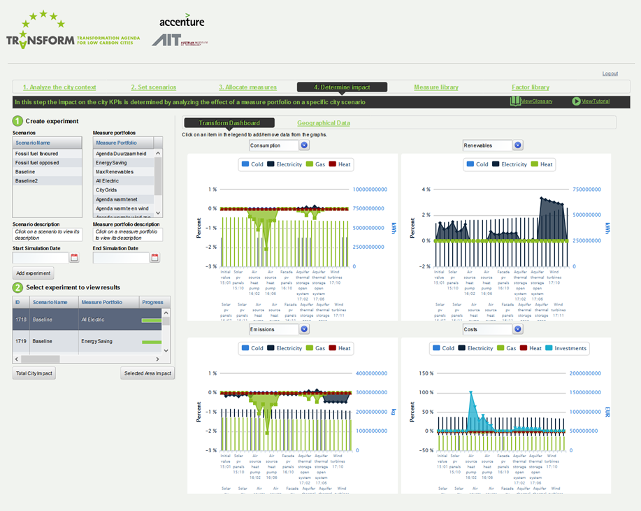 Within the TRANSFORM Program, AIT and Accenture have jointly developed the “Decision Support Environment” (DSE). This quantitative decision support tool helps cities to become smart energy cities, by enabling data-driven insights into their current and future energy transition plans.